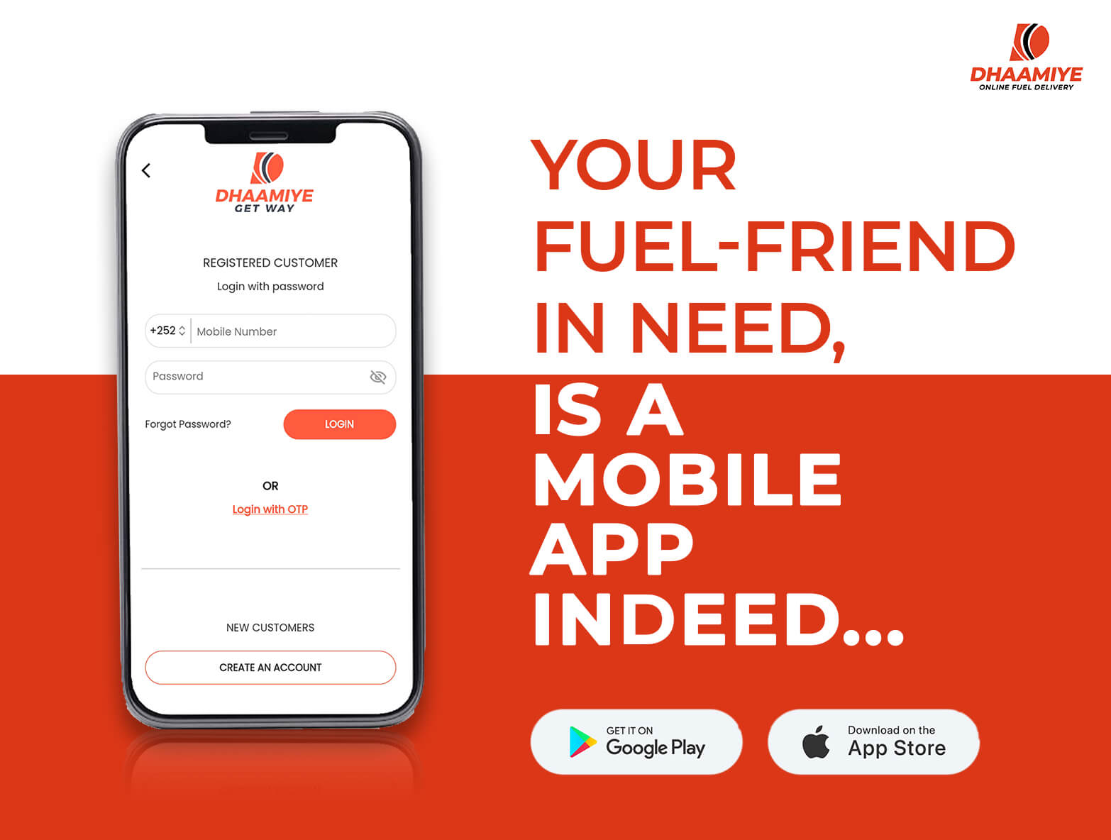 Dhaamiye app has number of fuel stations to choose from. When you open the app, you can search and you will see the nearest fuel station names, fuel type and the price of the fuel. When everything looks right, just click to place order. You will see the Dhaamiye partner accepted your order and started to deliver. Then you can track your order in the app. You will be able to see drivers name and photo and track their arrival time on the map.